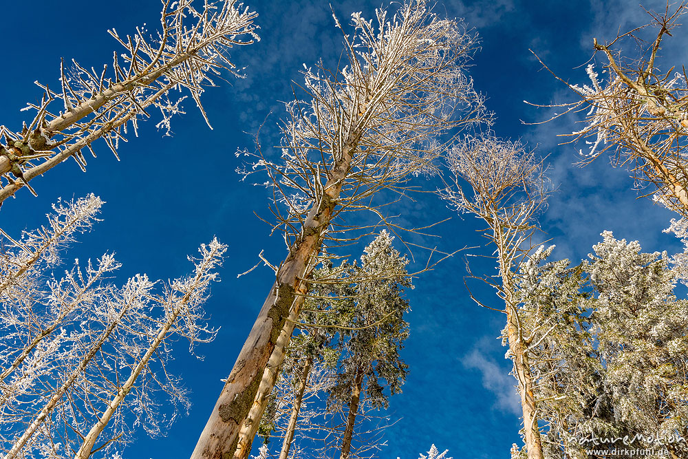 abgestorbene Fichten, teilweise mit Schnee bedeckt oder Eis ?berzogen, Brocken, Westhang, Harz, Deutschland