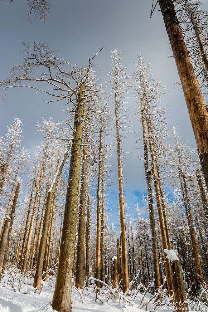 abgestorbene Fichten, teilweise mit Schnee bedeckt oder Eis ?berzogen, Brocken, Westhang, Harz, Deutschland