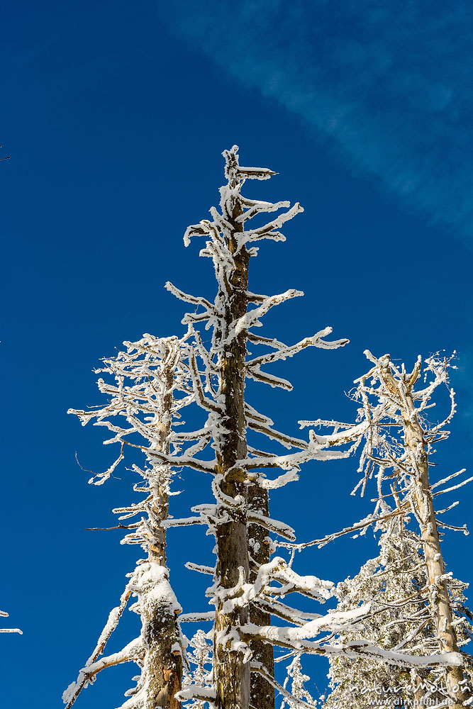 abgestorbene Fichten, teilweise mit Schnee bedeckt oder Eis ?berzogen, Brocken, Westhang, Harz, Deutschland