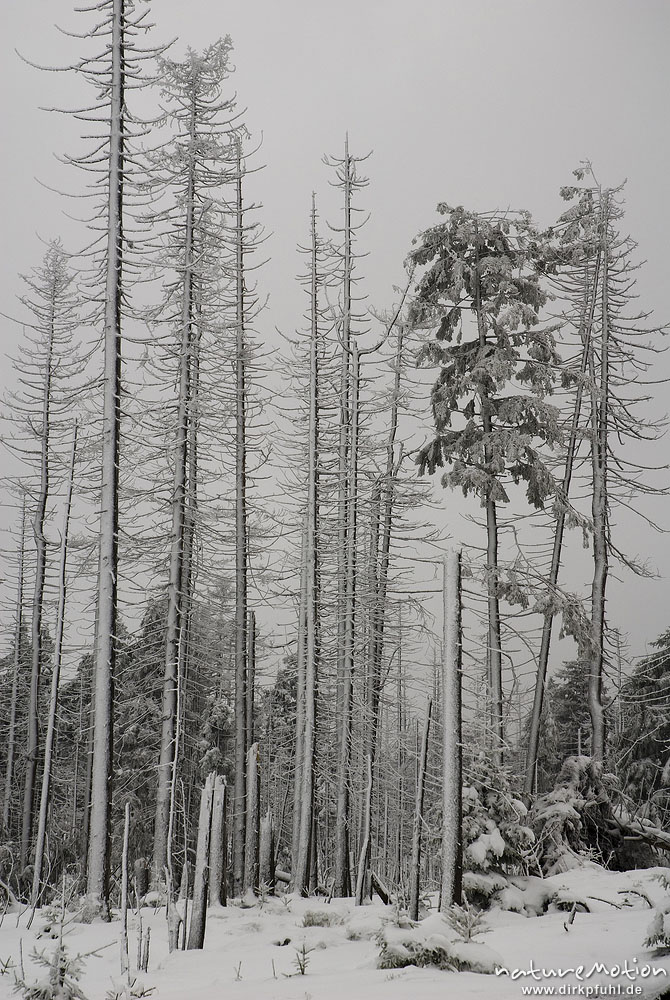 abgestorbene Fichten, vereist, bei Torfhaus, Harz, Deutschland