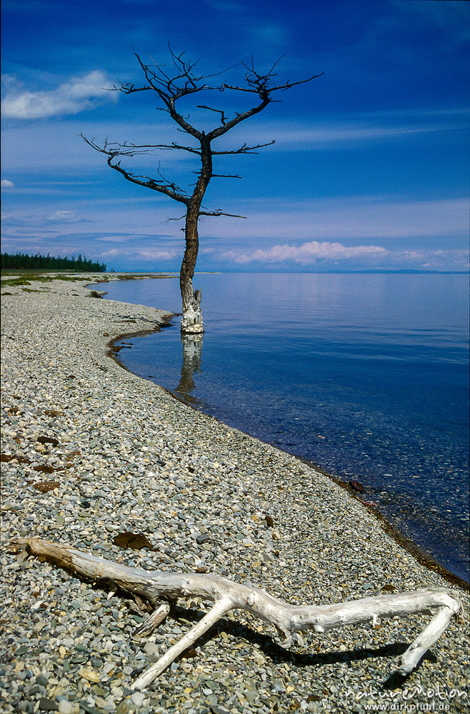 abgestorbener Baum am Seeufer Chowsg?l Nuur, Mongolei