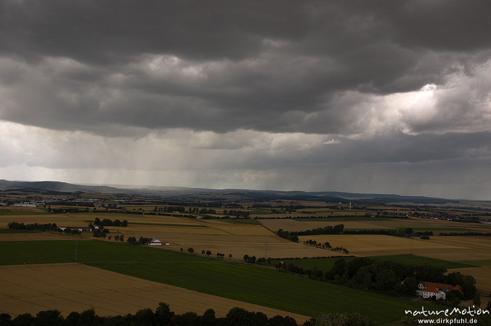 abregnende Regenwolken, aufziehendes Gewitter, Kulturlandschaft am Desenberg Warburg, Deutschland