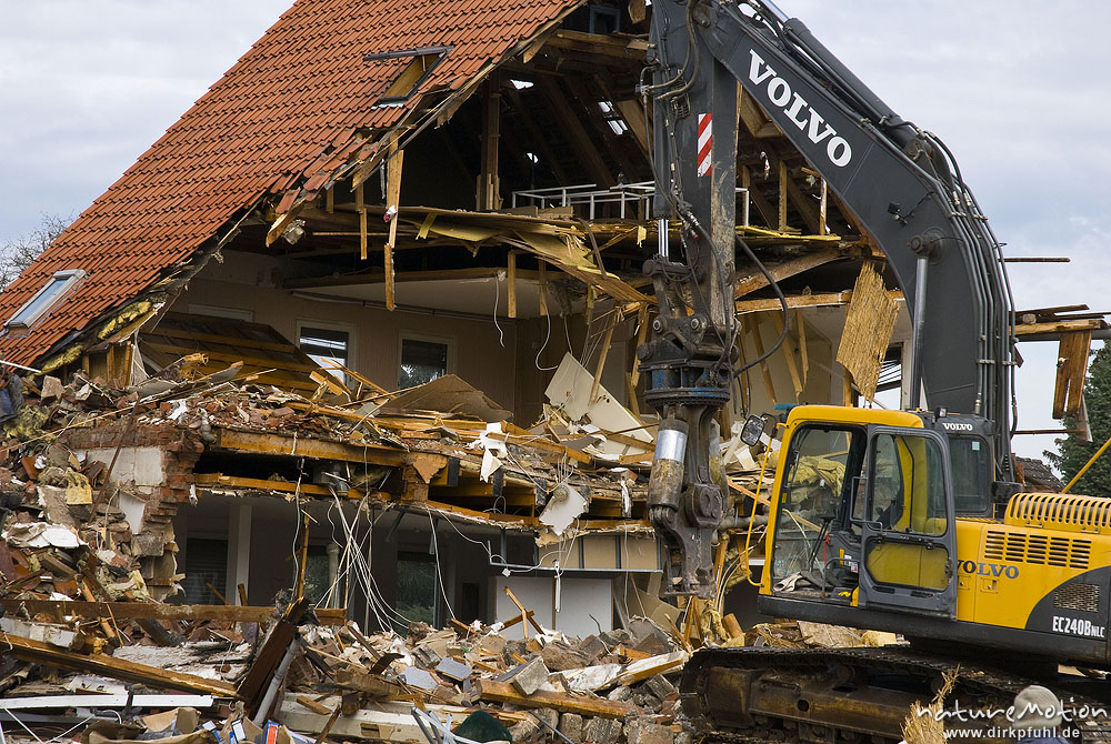 Abriss eines Wohnhauses, Bauschutt, Hydraulikbagger mit Raupenfahrwerk, Volvo EC240B, Groscurthstrasse Heinrich-Sohnrey-Strasse, Göttingen, Deutschland