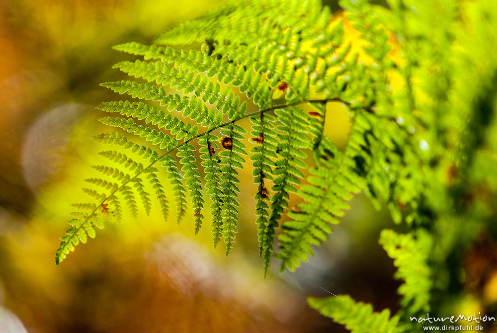 Adlerfarn, Pteridium aquilinum, Hypolepidaceae, Farnwedel mit beginnender Herbstfärbung, Urwald Sababurg, Deutschland