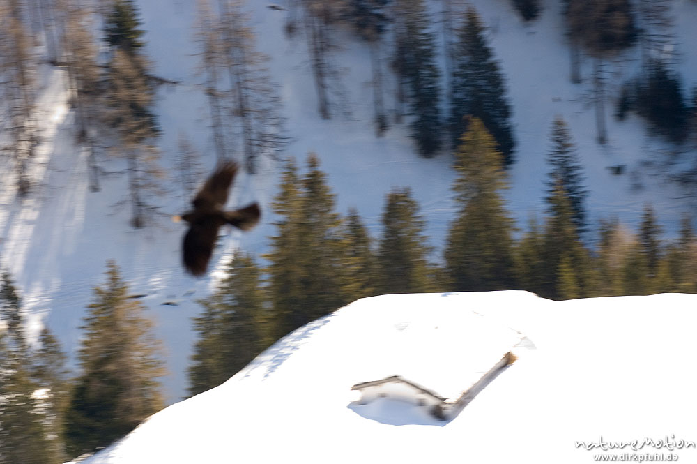 Alpendole, Pyrrhocorax graculus, Corvidae, Tiere im Flug, unscharf, Jänner Schönau am Königssee, Deutschland