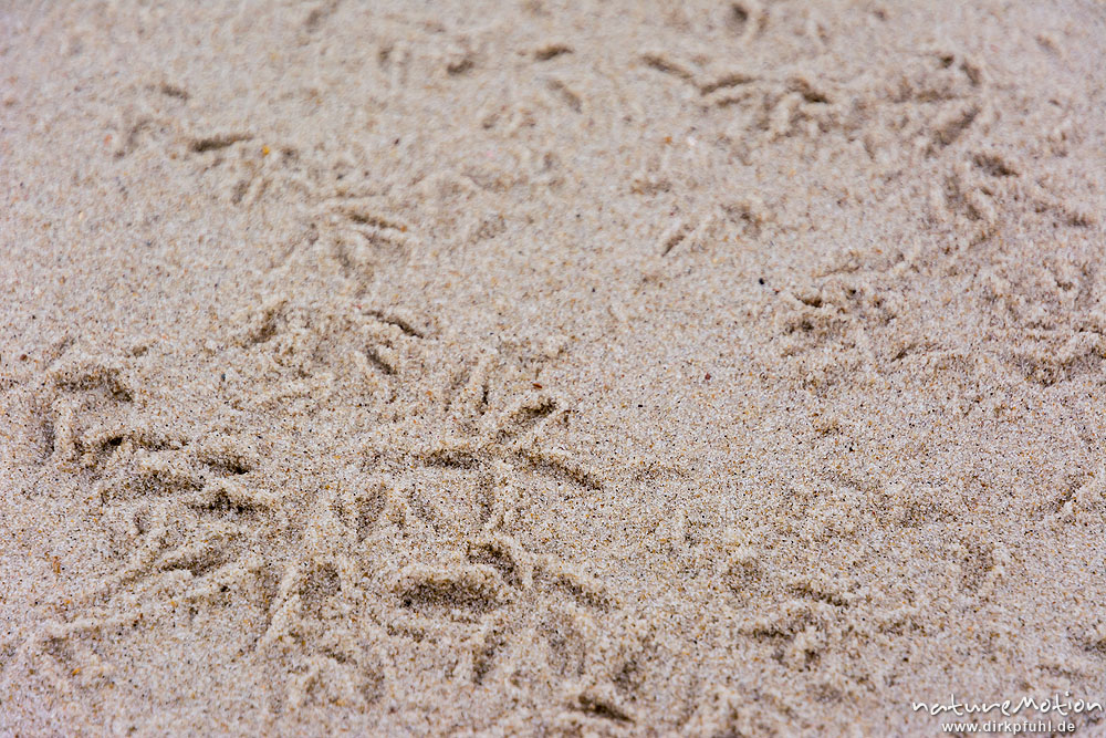 Alpenstrandläufer, Calidris alpina, Scolopacidae, Fussabdrücke im Sand, Spiekeroog, Deutschland