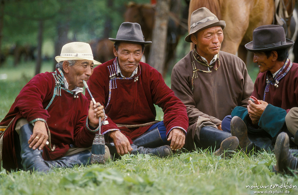 alte M?nner sitzen beisammen auf dem Steppenboden Ulaanbaatar - Ulan Bator, Mongolei