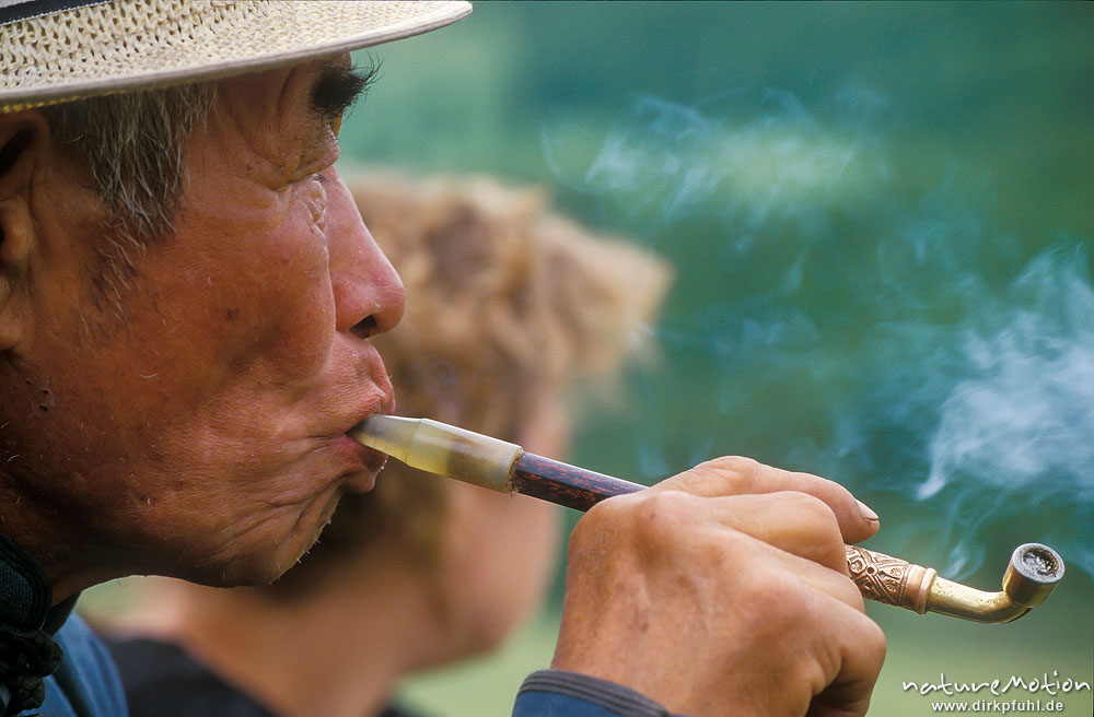alter Mann raucht Pfeife Ulaanbaatar - Ulan Bator, Mongolei