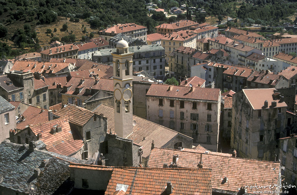 Altstadt und Dächer von Corte, Blick von der Zitadelle, Korsika, Frankreich