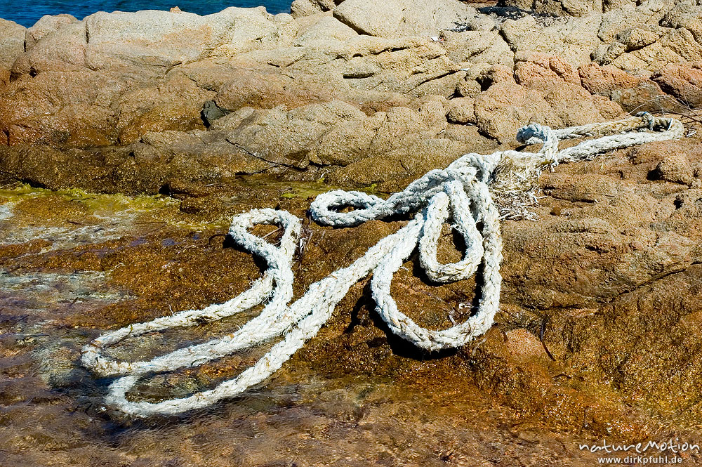 angeschwemmtes Tau, Bucht von Rondinaria Korsika, Frankreich