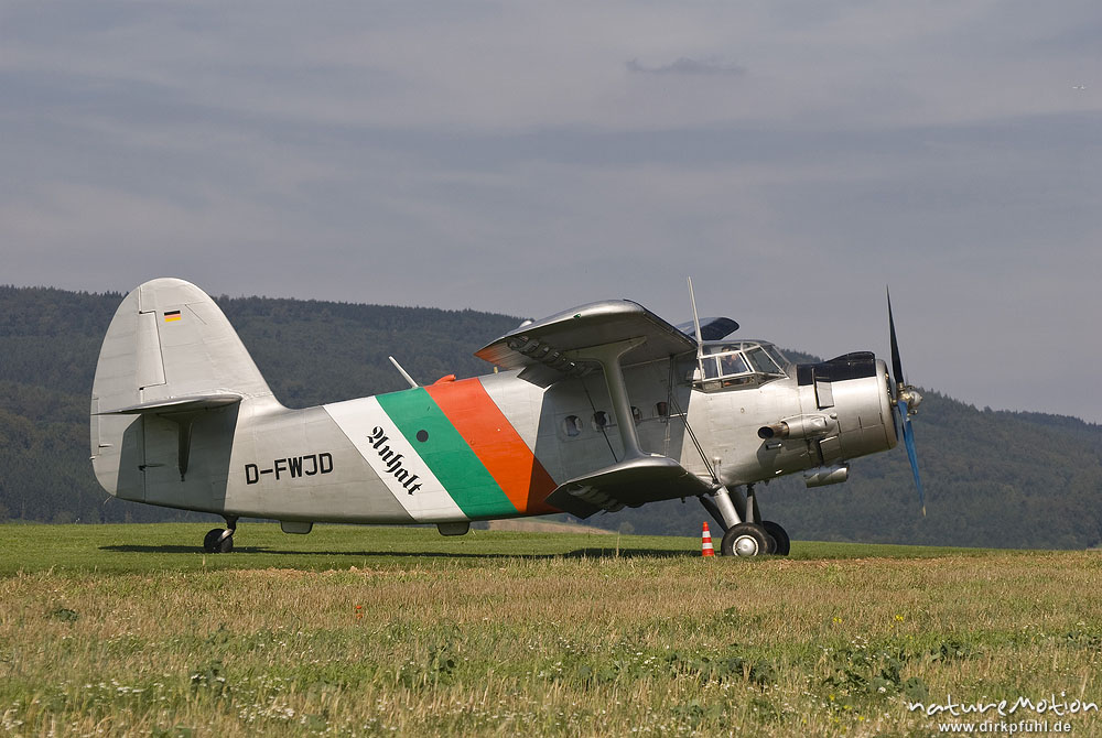 Antonow An-2 Doppeldecker Flugzeug, Landung auf Segelflugplatz, Flugtag Uslar, Uslar, Deutschland