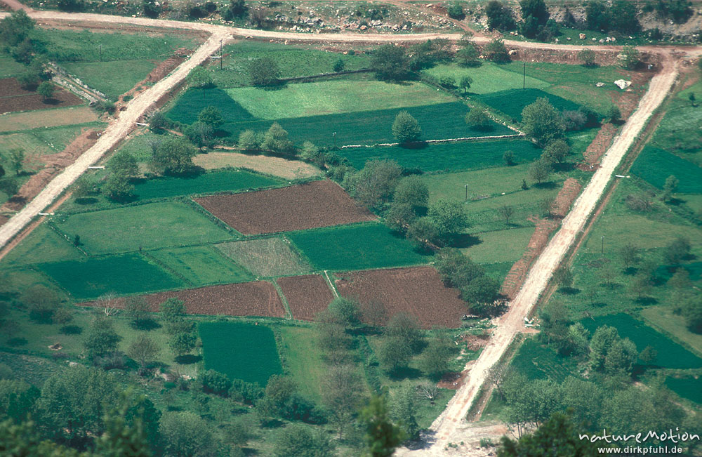 Arkadien, Felder bei Klitoria von oben gesehen, Flickenteppich, Peloponnes, Griechenland