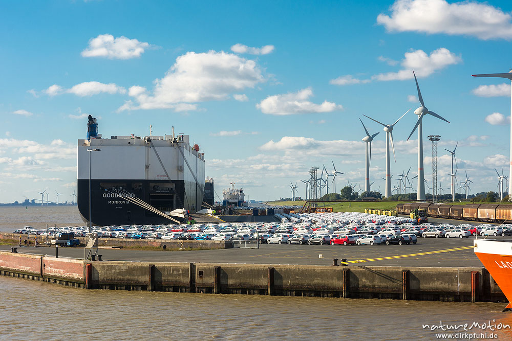 Außenhafen Emden, Verladung von Autos, Autotransporter, Emden, Deutschland