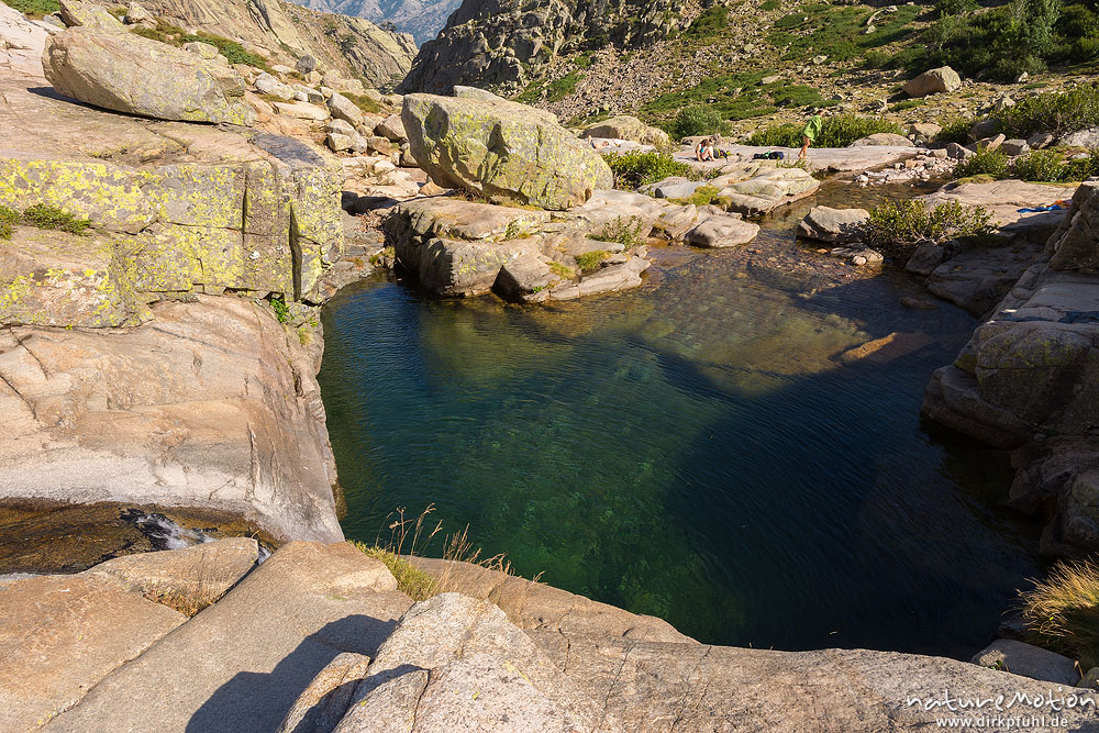 Bachlauf des Golo mit Erlengeb?sch und Badestelle, geringer Wasserstand Ende August, Korsika, Frankreich