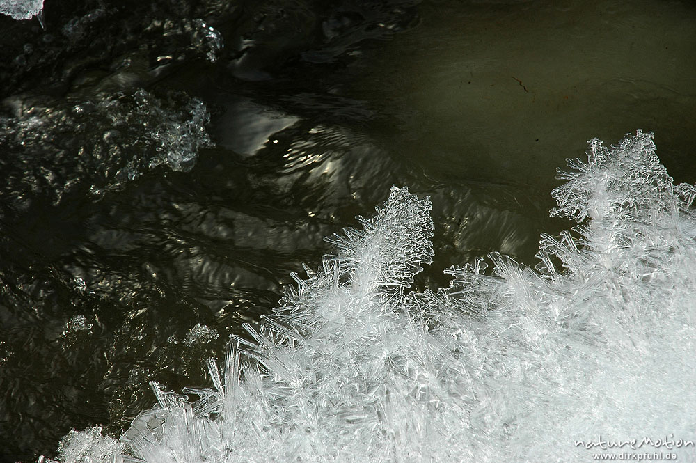 Bachlauf mit Eisdecke, Eiskristalle, Brunnenbachtal bei Braunlage Harz, Deutschland