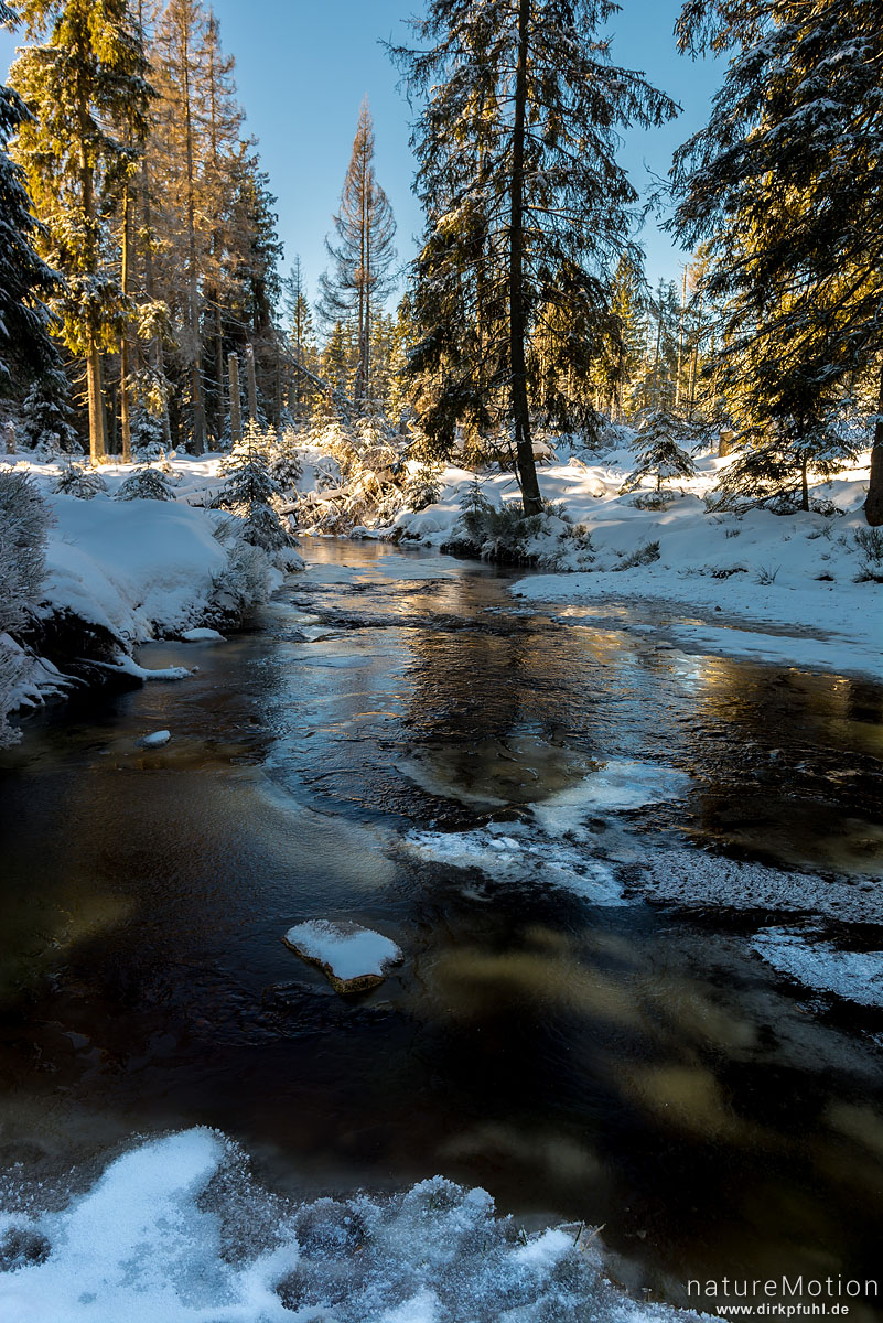 Bachlauf, teilweise zugefroren, Oberlauf der Oder, Torfhaus, Deutschland