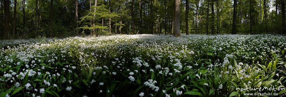 Bärlauch, Allium ursinum, Liliaceae, blühend, dichter bestand auf Lichtung im Buchenwald, Göttingen, Deutschland