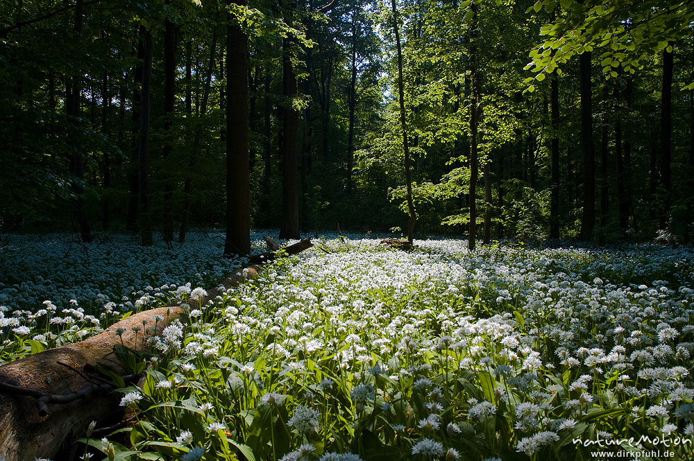 Bärlauch, Allium ursinum, Liliaceae, blühend, dichter bestand auf Lichtung im Buchenwald Göttingen, Deutschland