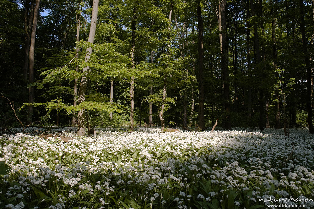 Bärlauch, Allium ursinum, Liliaceae, blühend, dichter bestand auf Lichtung im Buchenwald Göttingen, Deutschland