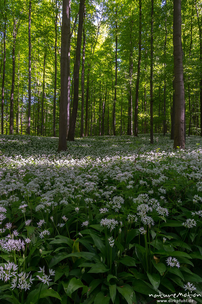 Bärlauch, Allium ursinum, Liliaceae, dichter Bestand blühender Pflanzen im Buchenwald, Diemarden bei Göttingen, Deutschland