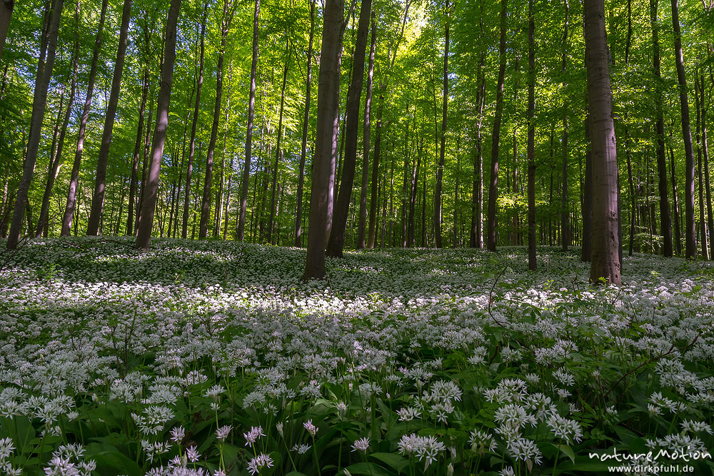 Bärlauch, Allium ursinum, Liliaceae, dichter Bestand blühender Pflanzen im Buchenwald, Diemarden bei Göttingen, Deutschland