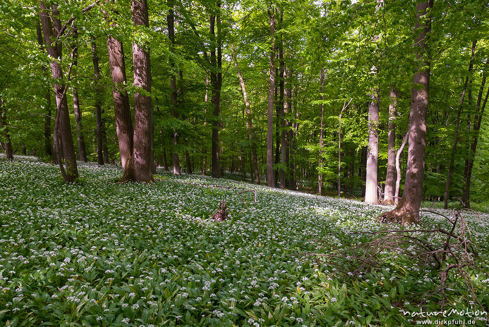 Bärlauch, Allium ursinum, Liliaceae, dichter Bestand blühender Pflanzen im Buchenwald, Westerberg, Göttingen, Deutschland