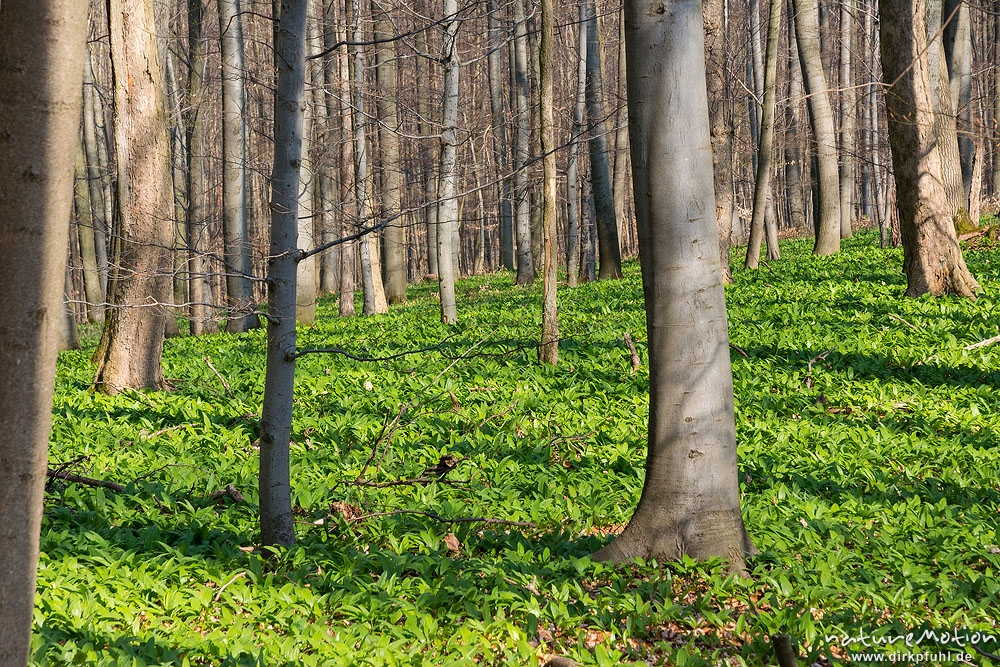 Bärlauch, Allium ursinum, Liliaceae, dichter Bestand im noch lichten Buchenwald, Westerberg, Göttingen, Deutschland