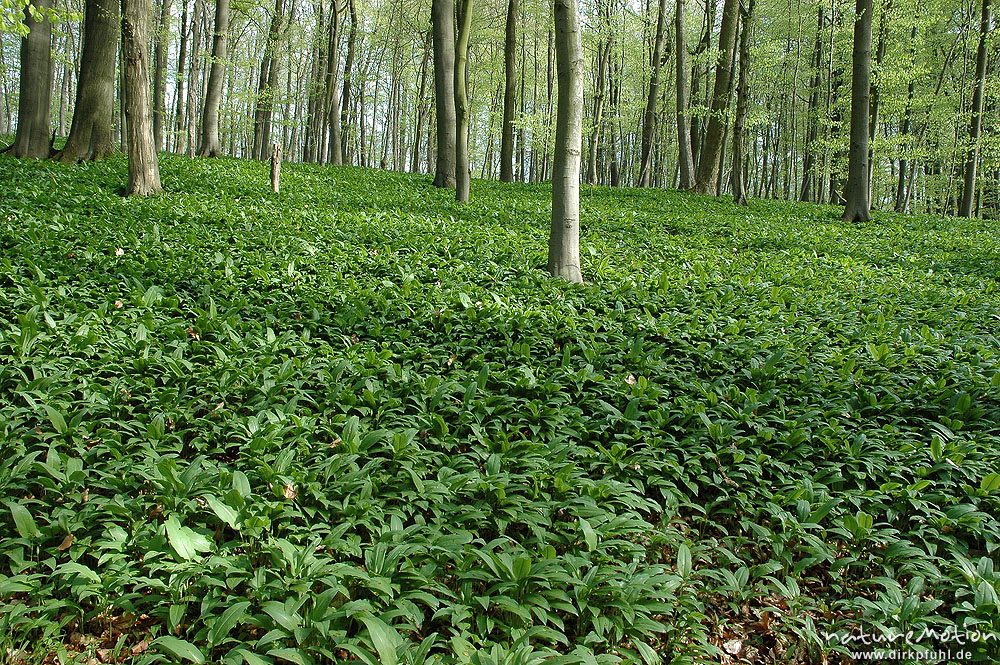 Bärlauch in Blüte, Allium ursinum, Teppich inmitten von Buchenwald, Westerberg Göttingen, Deutschland