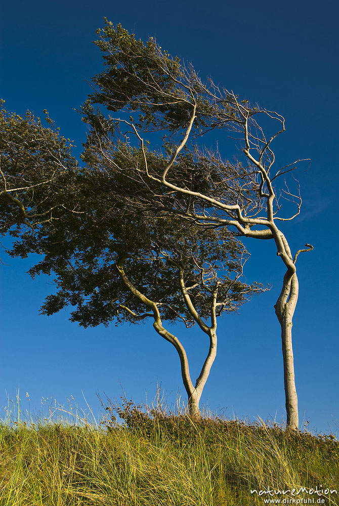 Bäume an der Dünenkante, vom Wind gebeugt, Windflüchter, Darsser Weststrand, Darß, Zingst, Deutschland