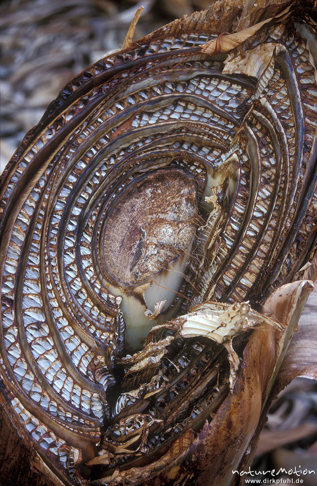 Banane, Dessertbanane, Musa × paradisiaca, Musaceae, Querschnitt durch den Stamm einer Bananenstaude, Valle Gran Rey, Calera, Gomera, Spanien