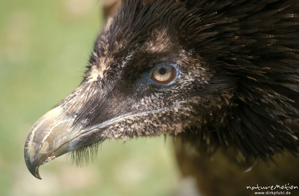 Bartgeier, Gypaetus barbatus, Accipitridae, Kopf eines Jungtiers, in Gefangenschaft bei kasachischen, Chowd, Mongolei
