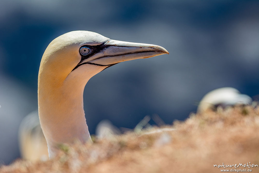 Basstölpel, Morus bassanus, Tölpel (Sulidae),Alttier in Brutkolonie, Lummenfelsen, Helgoland, Deutschland