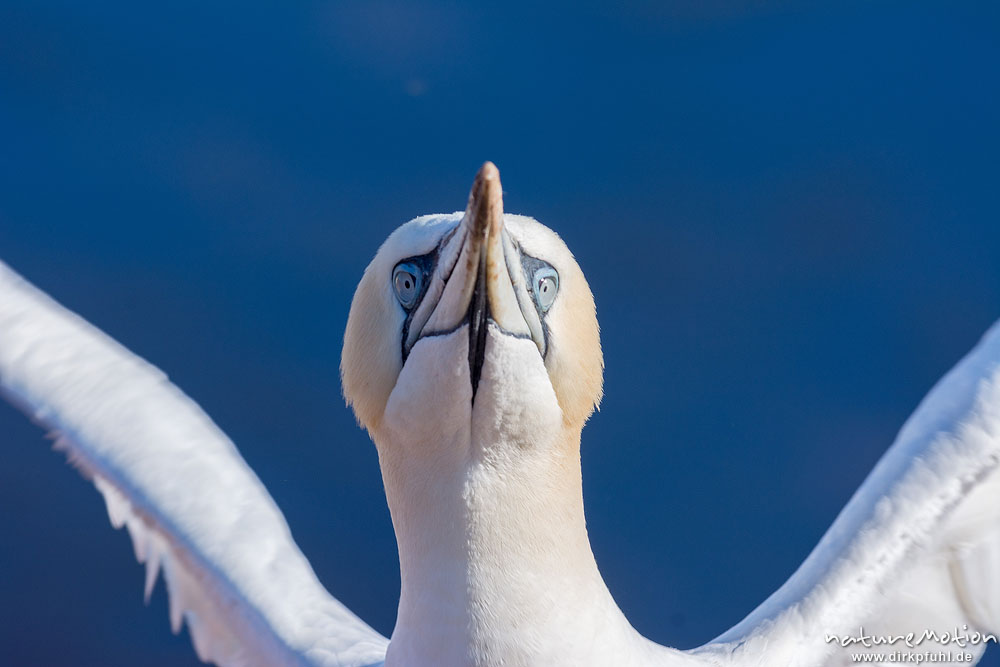 Basstölpel, Morus bassanus, Tölpel (Sulidae),Alttier in Brutkolonie, Lummenfelsen, Helgoland, Deutschland