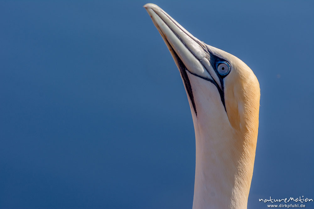 Basstölpel, Morus bassanus, Tölpel (Sulidae),Alttier in Brutkolonie, Lummenfelsen, Helgoland, Deutschland