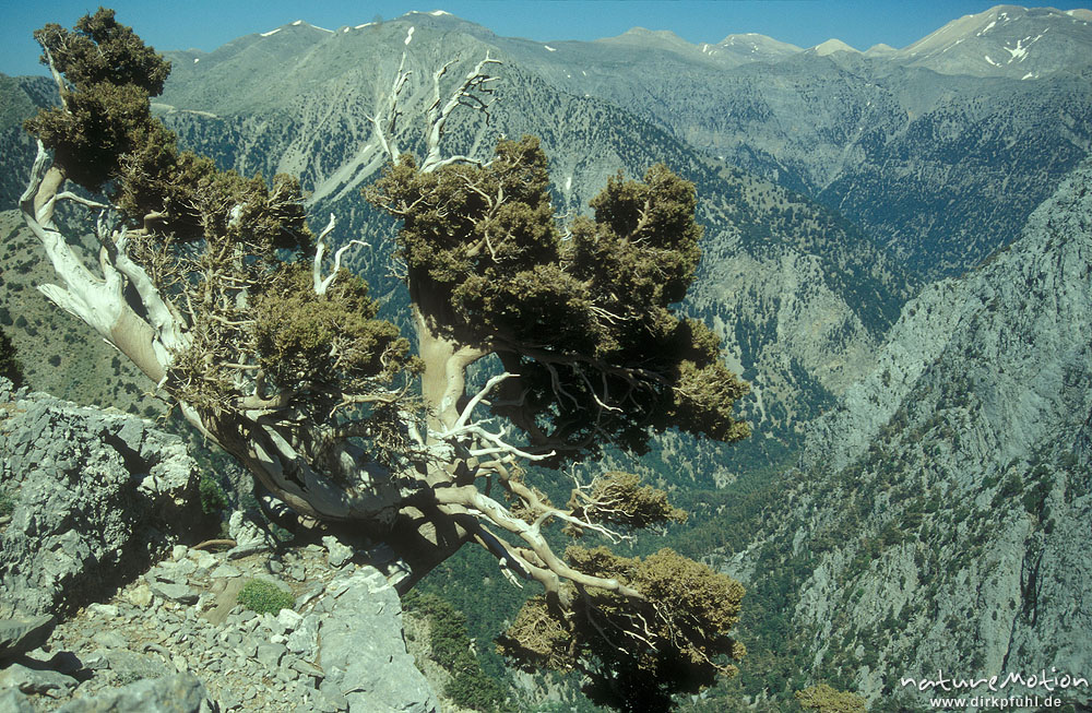 Baum an Felshang, Blick in die Sammaria-Schlucht, Kreta, Griechenland