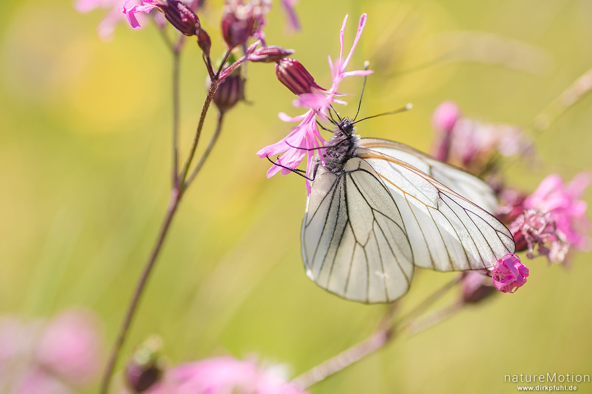 Baum-Weißling, Aporia crataegi, Weißlinge (Pieridae),Tier an Kuckucks-Lichtnelke, Streuwiese, Wurzacher Ried, Bad Wurzach, Deutschland