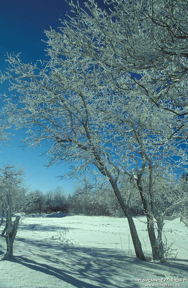Baumgruppe, vereiste Zweige vor blauem himmel, Torfhaus, Harz, Deutschland