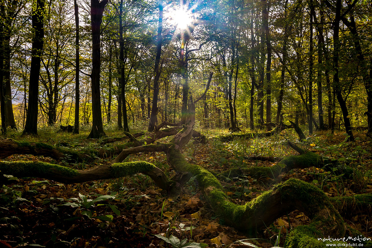 Baumskellet, mit Moos bewachsen, Groner Holz, Göttingen, Deutschland
