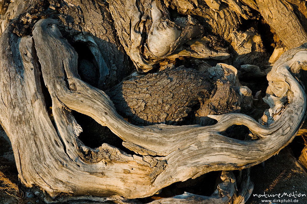 Baumwurzel, von vielen Füssen glatt gescheuert, Bodri, Korsika, Frankreich
