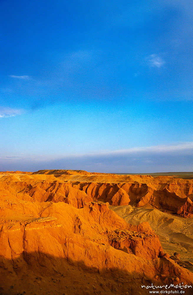 Bayanzag, rote Sandsteinfelsen, Blick auf die Klippen, leuchtend Rot ,