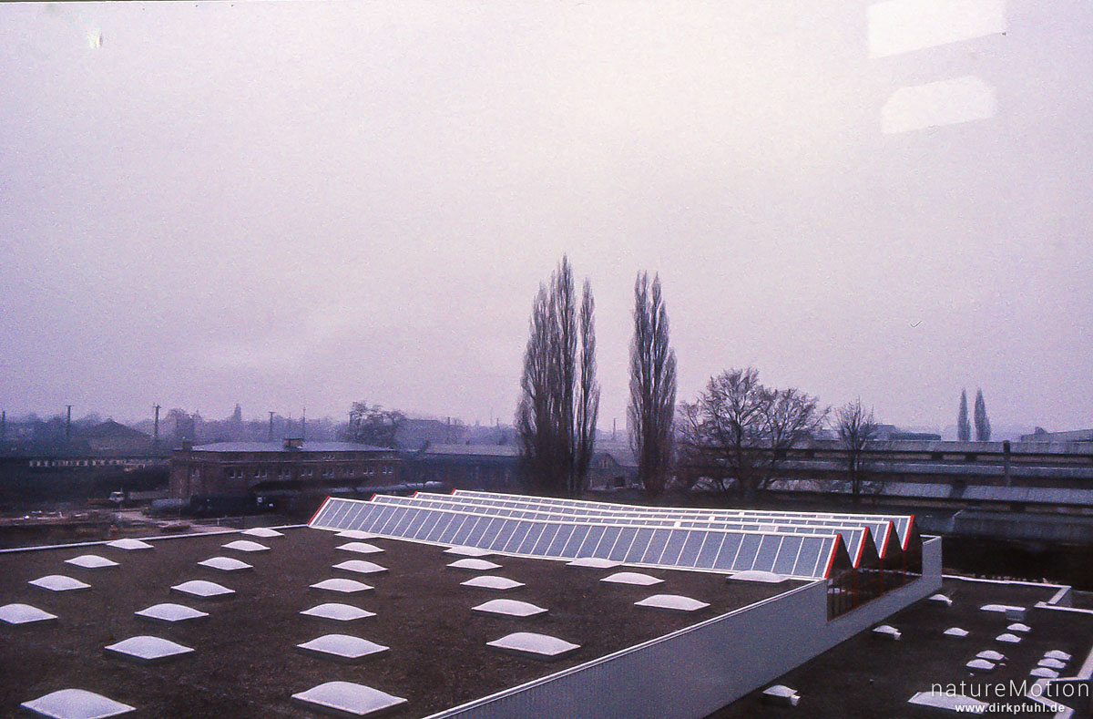 Blick über Dach auf Bahnhof und Lokhalle, Berufsbildende Schule II, BBS II, Godehardtstraße, Göttingen, Deutschland