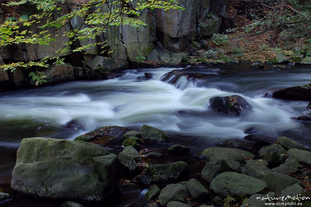 Bergbach, fließendes Wasser, Steine im Bachbett, Herbstwald, Bodetal Bodetal, Deutschland