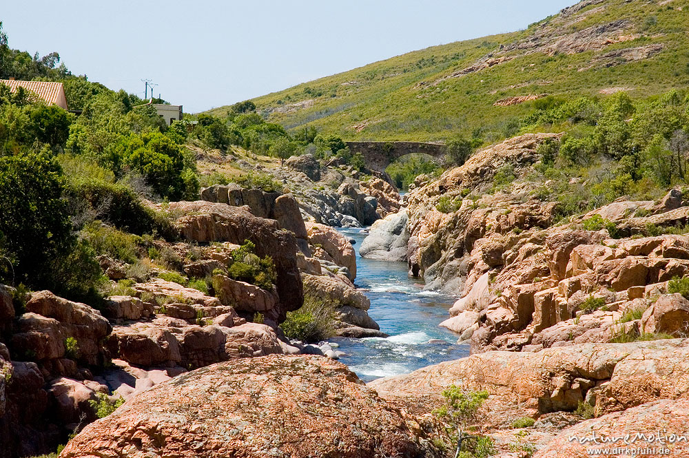 Bergbach mit Brücke, Fango-Tal, Korsika, Frankreich