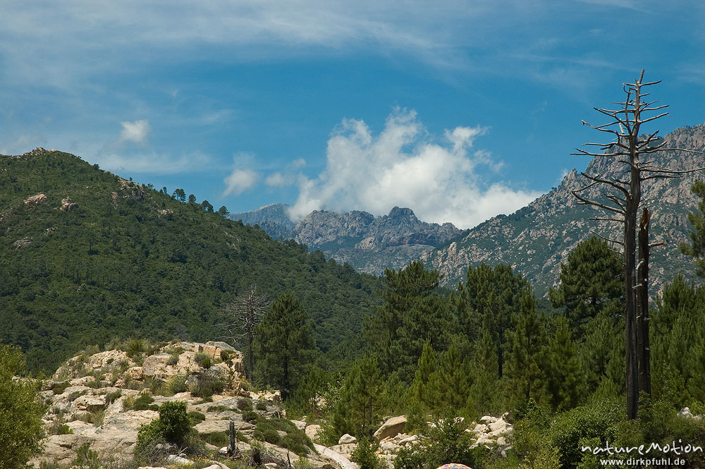 Berglandschaft, Blick auf die Bavella-Gruppe, Tal des Cavo Korsika, Frankreich