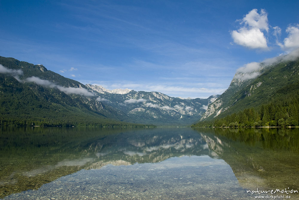 Bergsee, spiegelnde Berge, Bohinjer See Wocheiner See, Slowenien