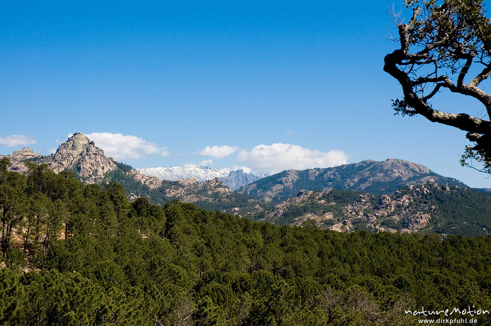 Bergzüge beim Stausee von Ospedale, Monte Incudine, schneebedeckt, Korsika, Frankreich