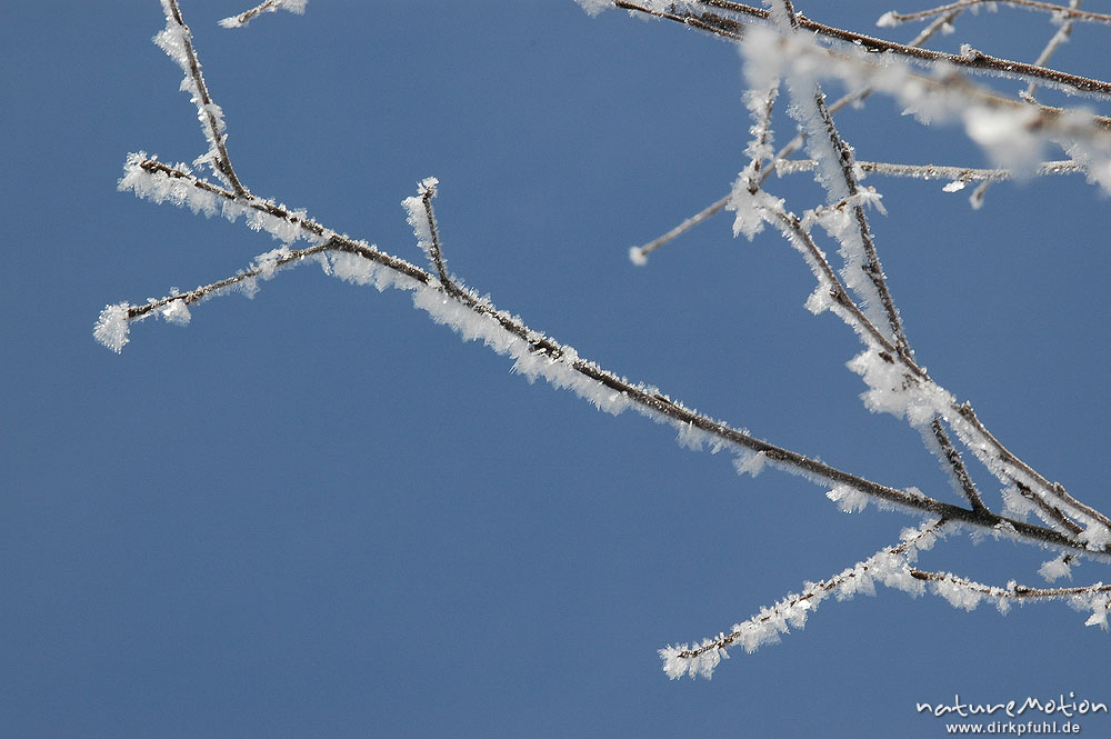 Birke, Zweige mit Rauhreif-Nadeln, Brunnenbachtal bei Braunlage Harz, Deutschland