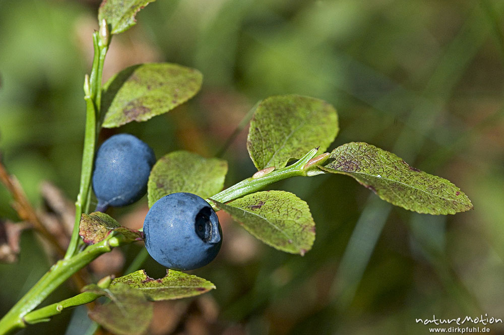 Blaubeere, Heidelbeere, Vaccinium myrtillus, Früchte und Blätter, Wald Serrahn, Mecklenburger Seen, Deutschland