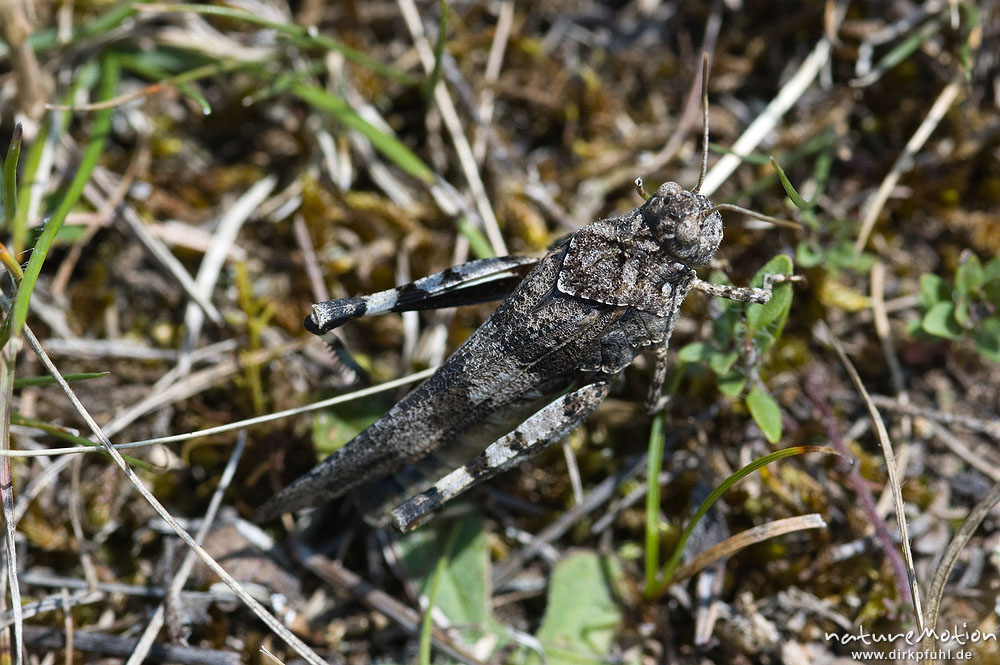 Blauflügelige Ödlandschrecke, Oedipoda caerulescens, Acrididae Altmühltal, Deutschland