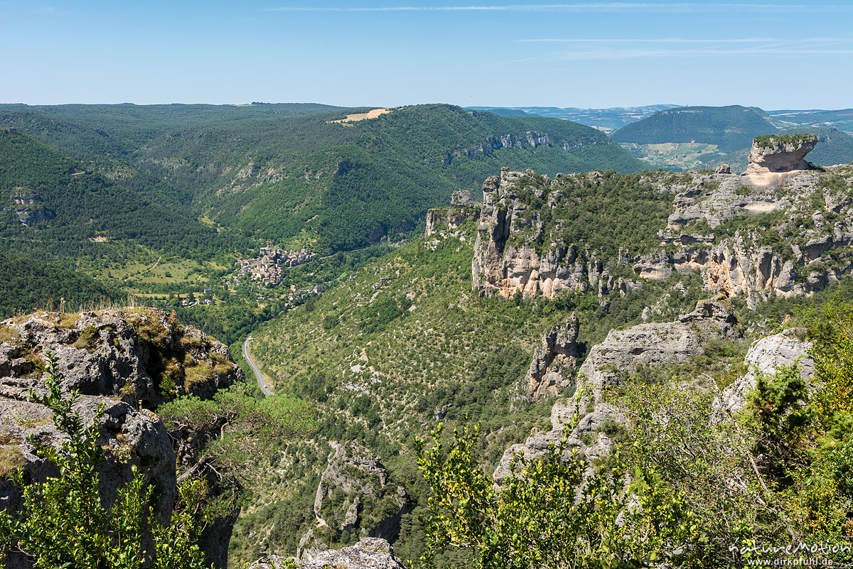 Blick auf Peyreleau, Felsformationen, Tal der Jonte, Felswanderung Schluchtenwelt bei le Rozier, Gorges de la Jonte, Le Rozier, Frankreich